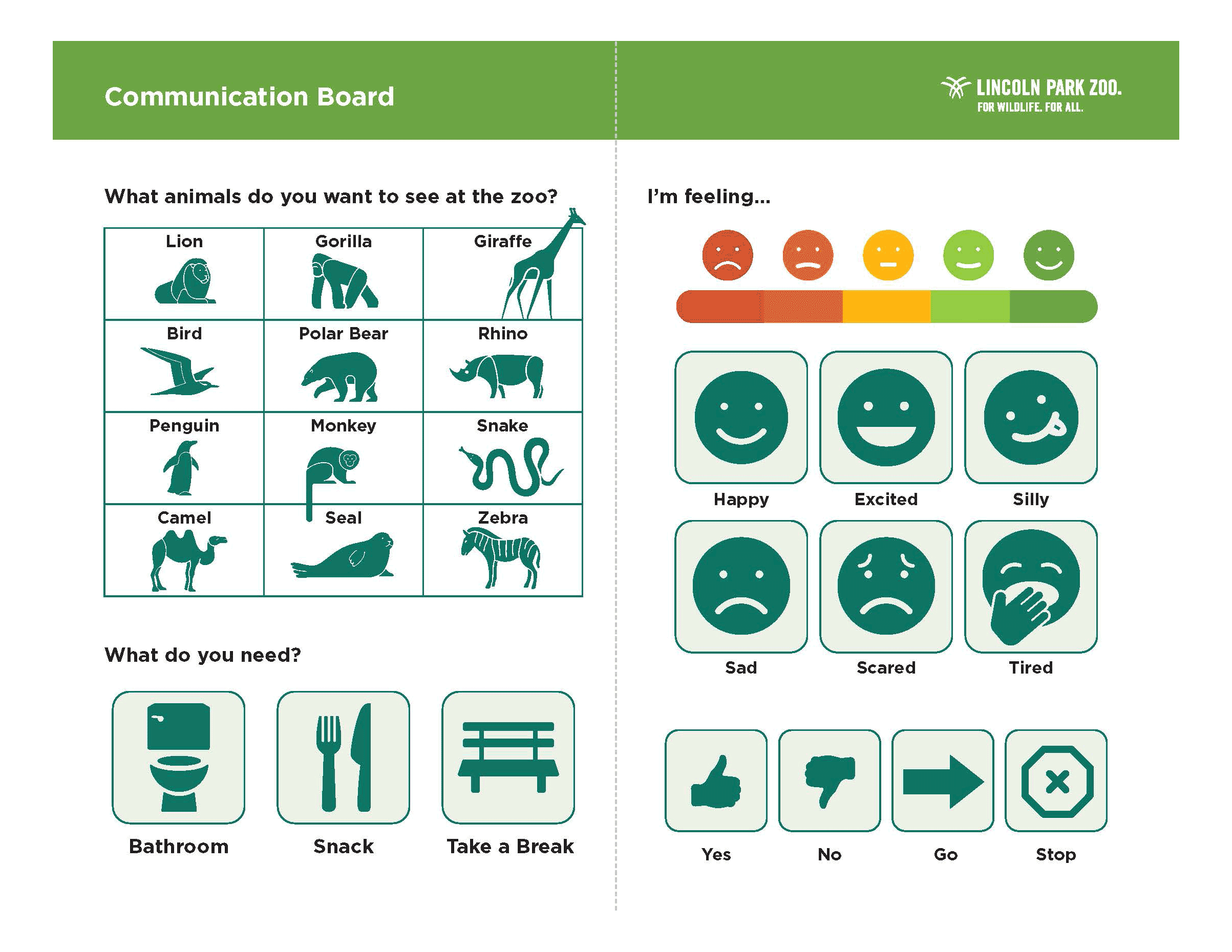 The design of the communication board is specific to Lincoln Park Zoo’s animals and expected experiences while visiting.